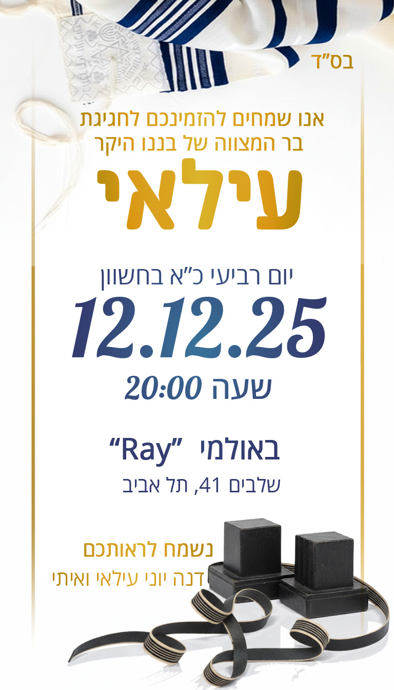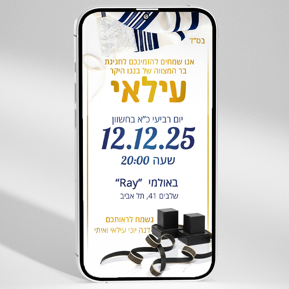 הזמנה דיגיטלית לבר מצווה דגם "עילאי"